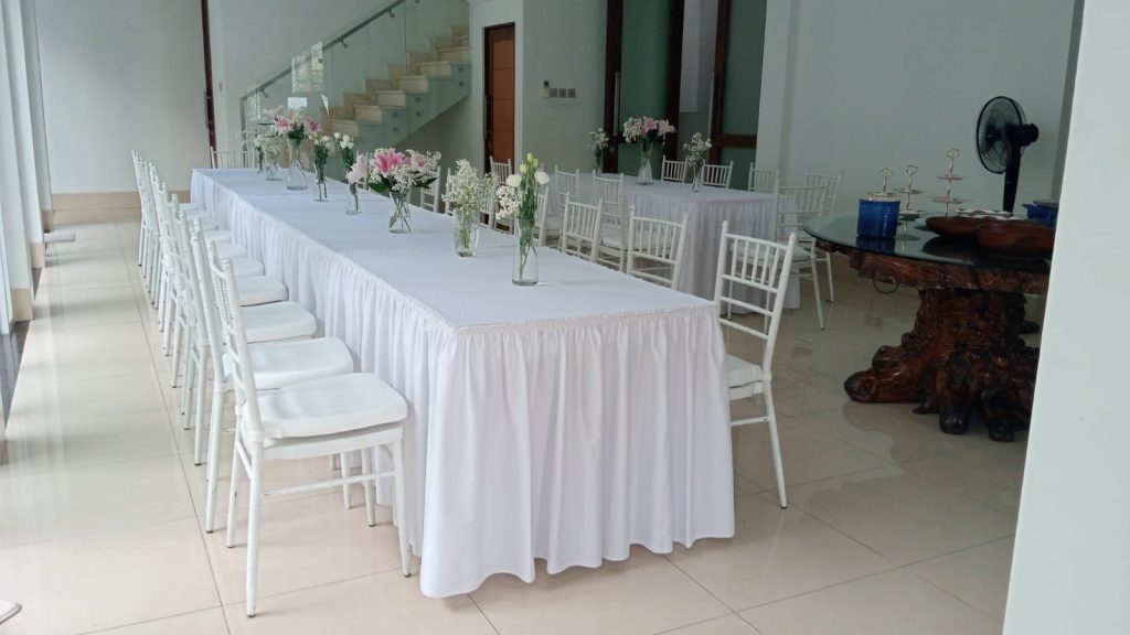 Kursi tiffany merupakan jenis kursi yang sangat populer dalam acara lamaran atau bahkan pernikahan karena designnya yang ramping.